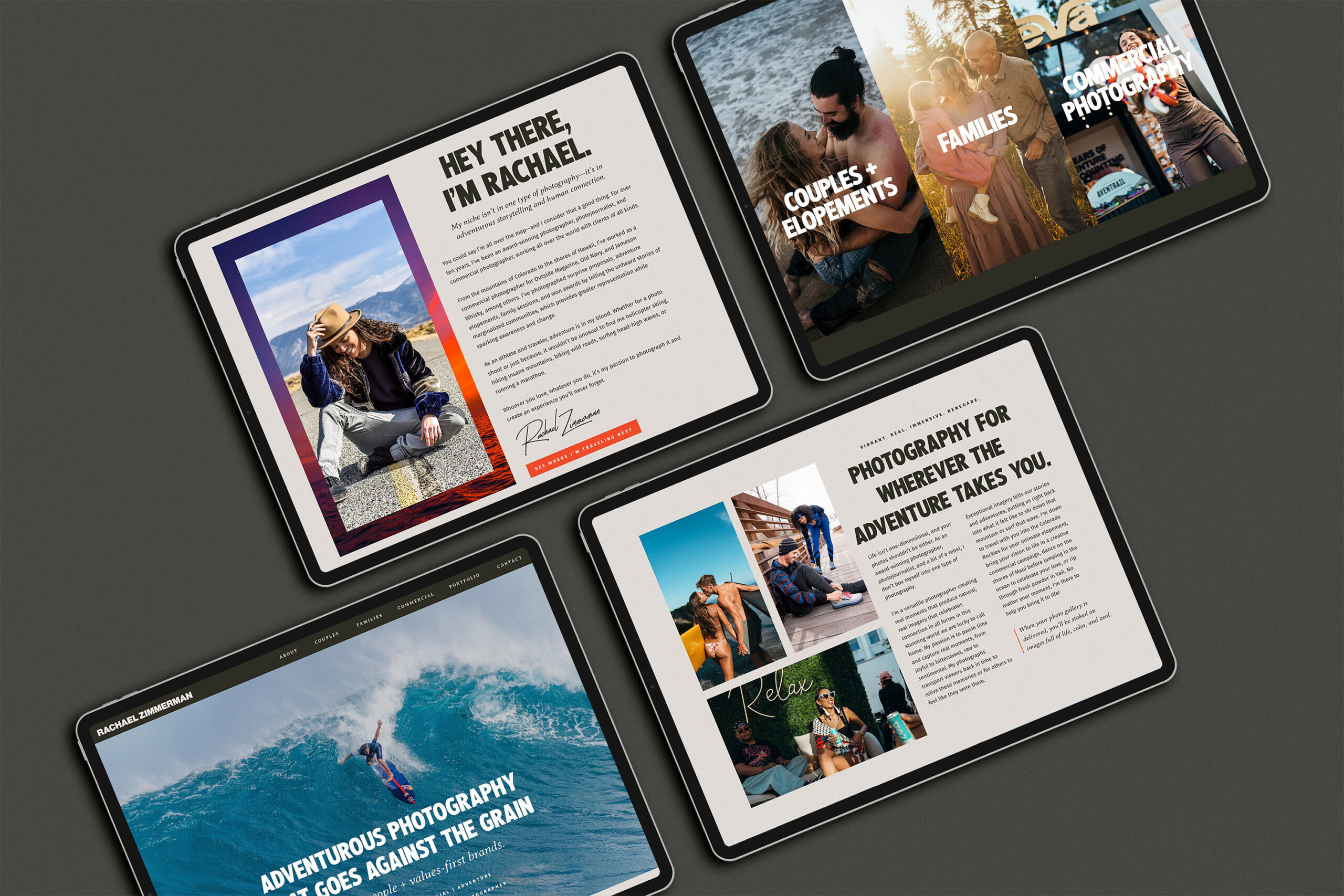 Rather than narrowing her focus to one photography niche, Rachael embraces the depth of her experience as a strength. We crafted a brand identity that honors both her past in Maui and her new home in Colorado while maintaining a timeless, professional aesthetic that appeals to a diverse range of clients. The color palette and design elements balance warmth and confidence, reflecting both her adventurous spirit and deep connection to storytelling through photography.