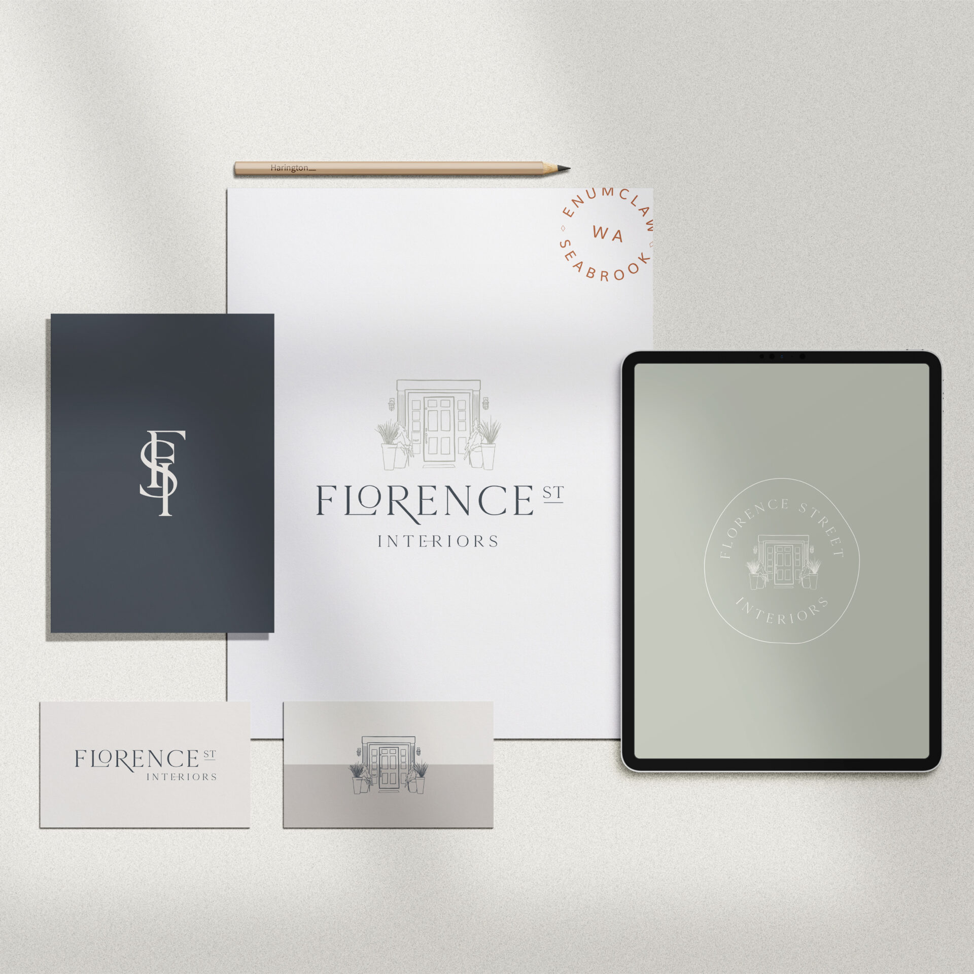 A unique feature of Whitney’s brand is its deep personal connection—the name Florence Street Interiors is inspired by her home, and the brand identity incorporates a hand-drawn illustration of her front door. This thoughtful detail immediately sets her apart, making the brand feel personal, welcoming, and distinctive.