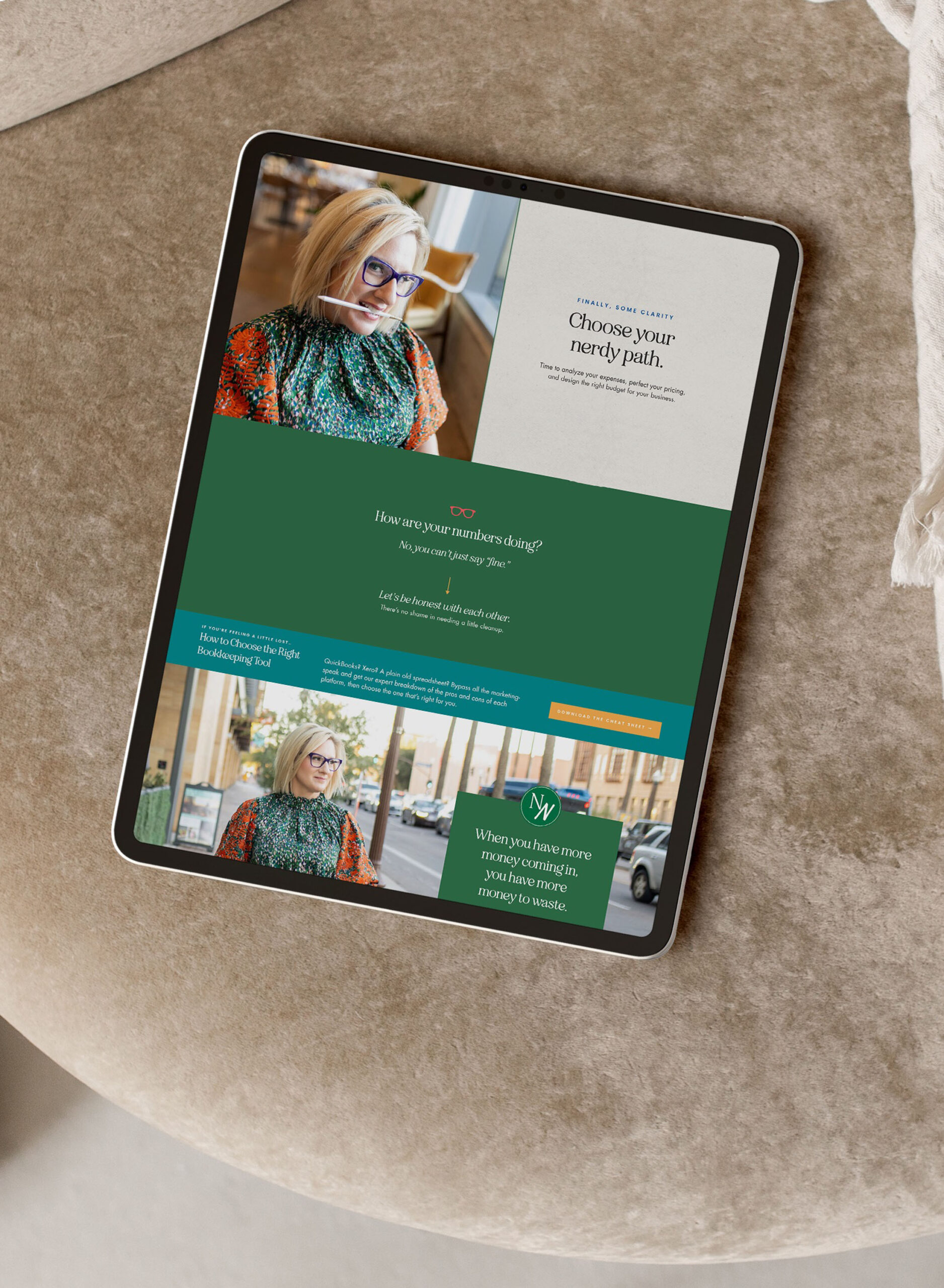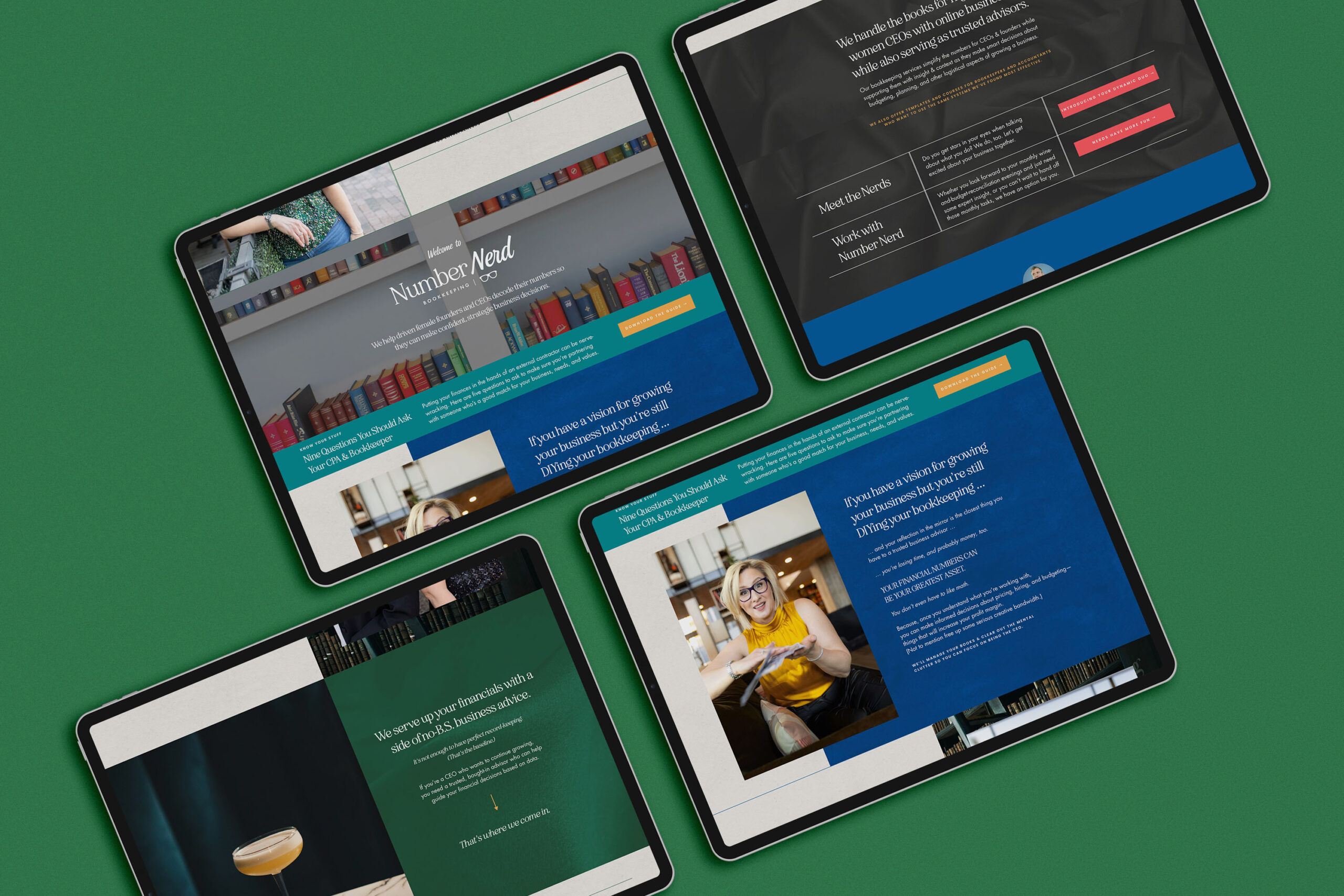 Working with Heather, the owner of Number Nerd Bookkeeping, was such a creative and exciting project. As a business that makes numbers approachable and even fun, Heather wanted a custom website and branded collateral that reflected her vibrant personality while maintaining professionalism. Using the fantastic copy from Ashlyn Writes, we designed a seamless and engaging online presence that brings Number Nerd’s brand to life.