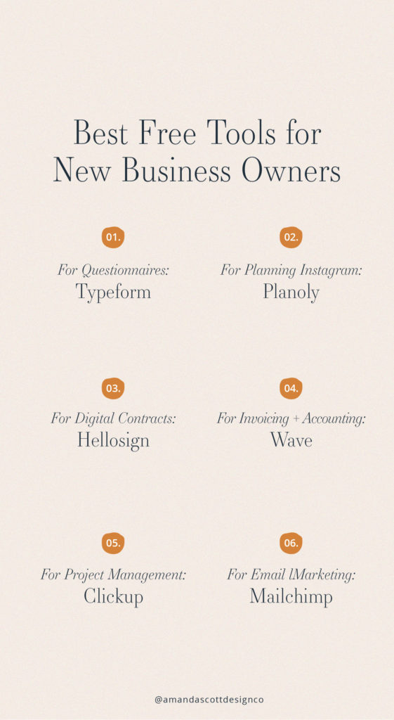 Not everything that is free is worth using in your business. In fact, I recommend upgrading and simplifying the amount of systems you use when you can. But when you’re first starting out, it’s great to lean on simple, free tools to help you run your business. Some of these I actually still use the free version of! But these are some of the tools I used when I was first starting in my business and slowly over time some of them got replaced with systems and tools that can do more of the heavy lifting for me.