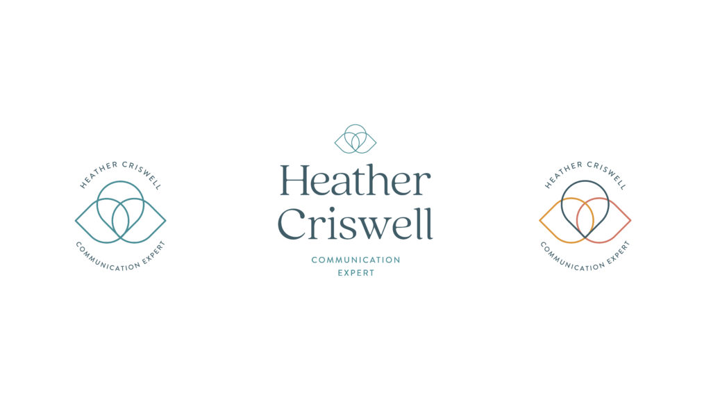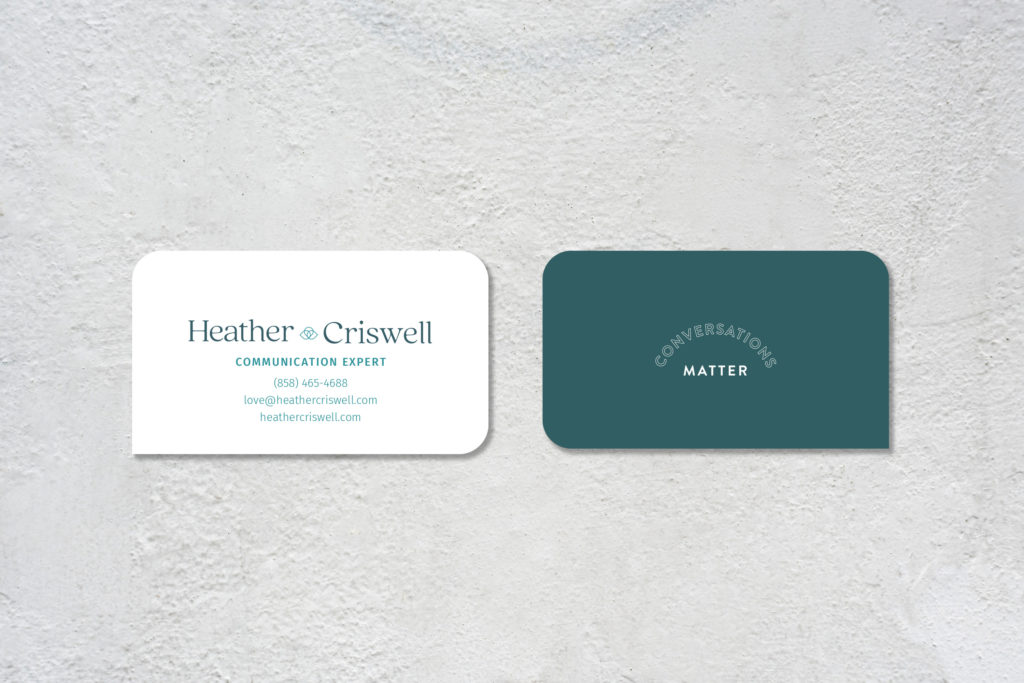 As a communication expert, Heather has a unique approach to helping people have better conversations. She serves as a mediator and a guide in her training, helping to bring people to common ground and understanding. We illustrated this in a custom mark of three speech bubbles, all combining to have a heart at the center of the mark because Heather’s philosophy is “Conversations rooted in love change everything.”