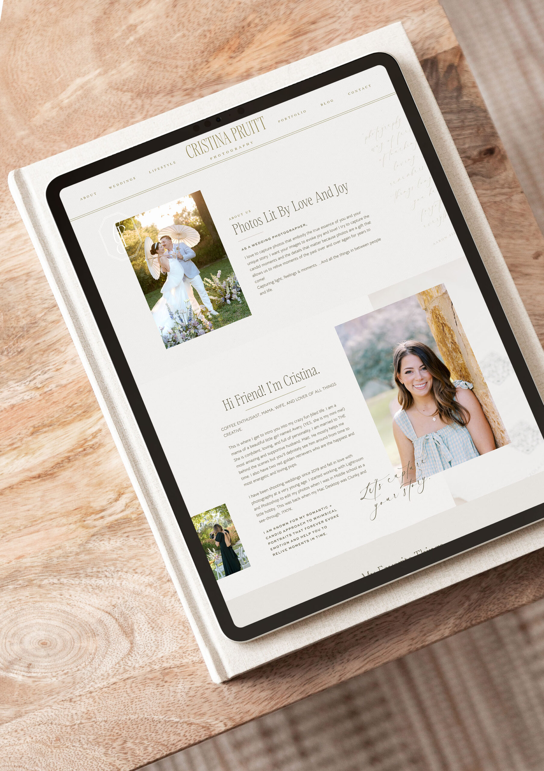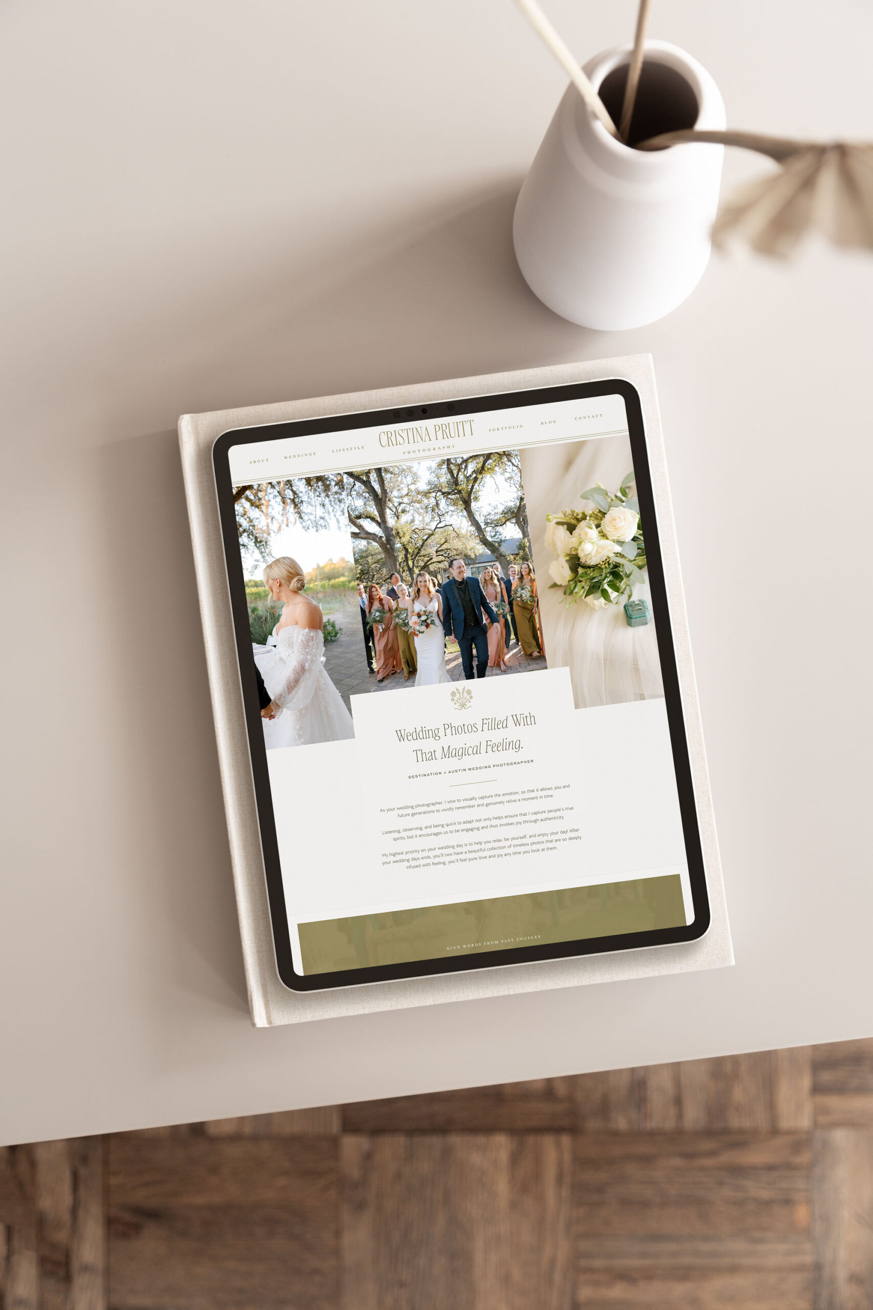 When Cristina Pruitt, a talented wedding photographer based in Texas, reached out for a rebrand and website update, I knew we were about to create something truly special. Cristina wanted a refined, garden-inspired brand that would attract detail-oriented clients who value artistry and are willing to invest in high-quality wedding photography. With a focus on elegance and sophistication, we crafted a cohesive brand identity and a high-end website that perfectly embodies her vision.